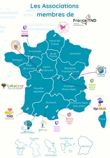 La Fédération rassemble plusieurs Associations dans différents départements. Votre Association souhaite être affiliée à France TND ? Ou vous souhaitez créee une Association, nous pouvons vous aidez ? Contactez-nous.