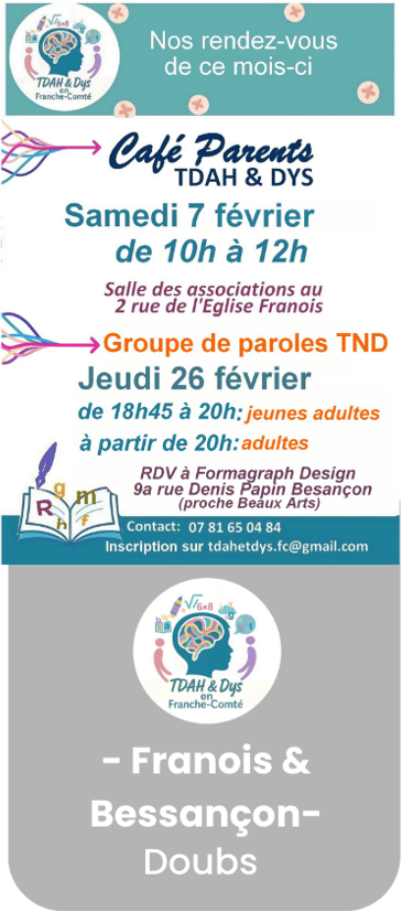 une Fédération de parents, d'adultes avec des Troubles du Neurodéveloppement ainsi que de professionnels et d'Associations présentes dans plusieurs Départements, une Fédération pour :