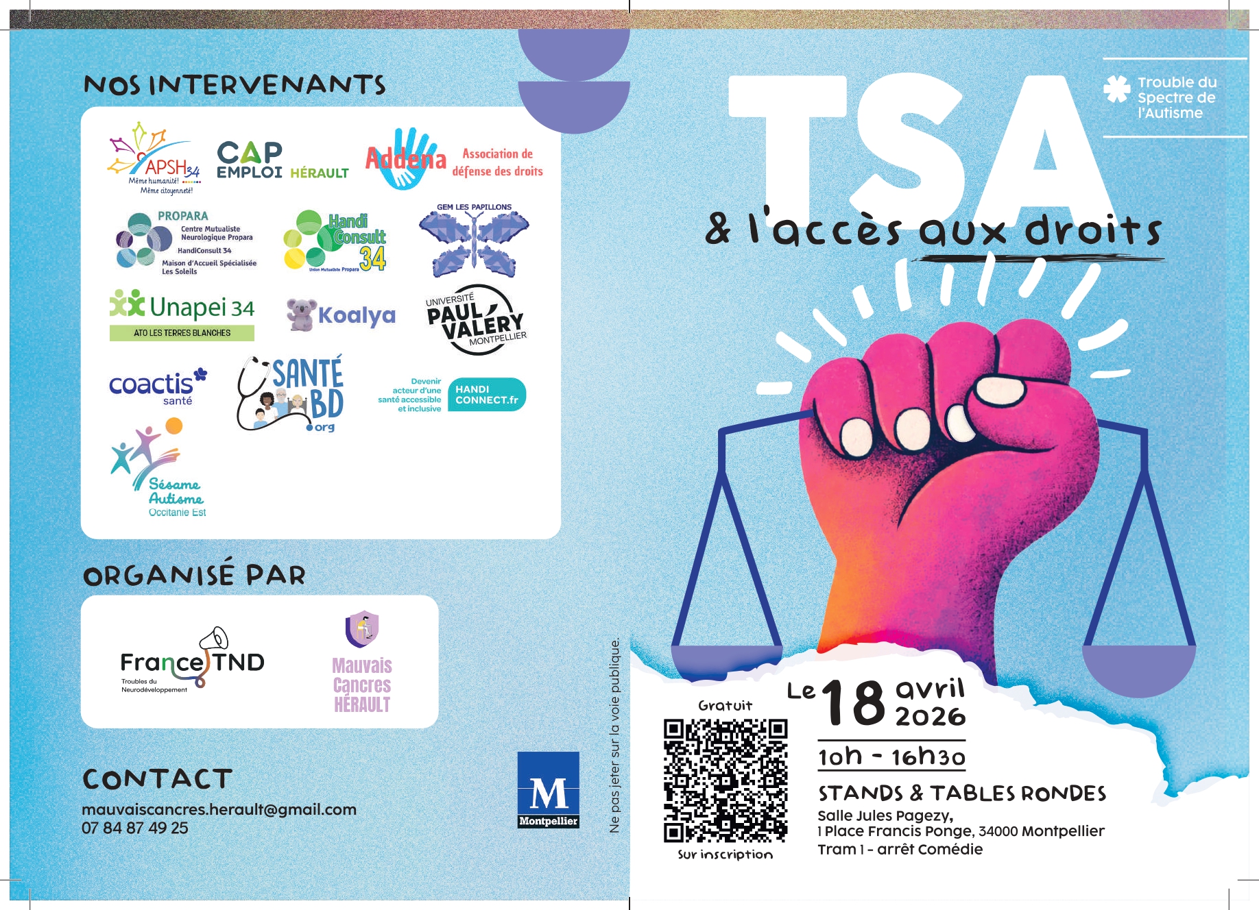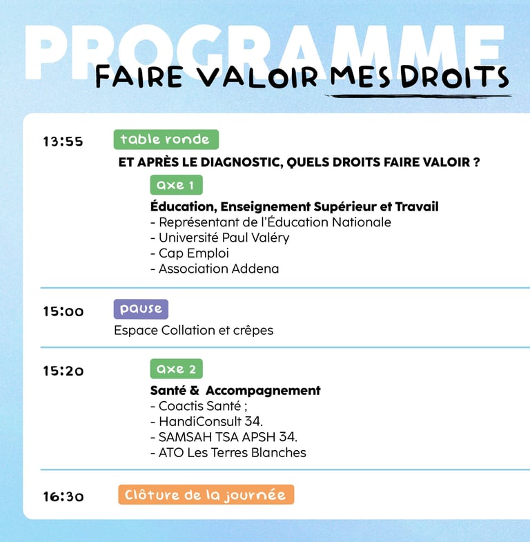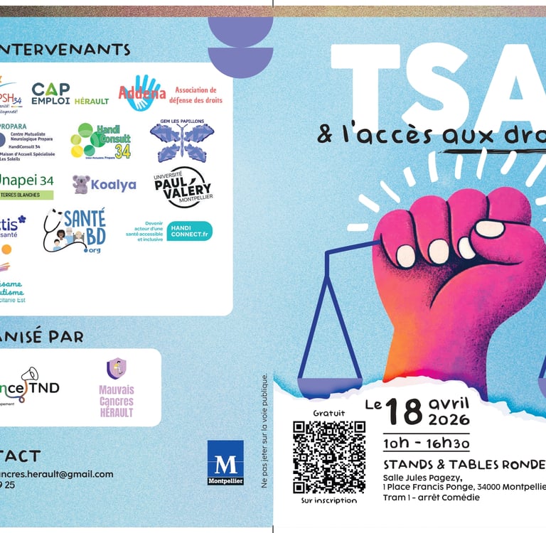 Journée à Montpellier, Samedi 18 avril : Le TSA & l'Accès aux Droits, inscription ouverte le 18 mars.