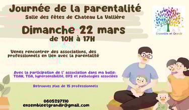 Le 22 mars : Nous serons présents à la journée de la parentalité a château la valliere ( cf affiche)